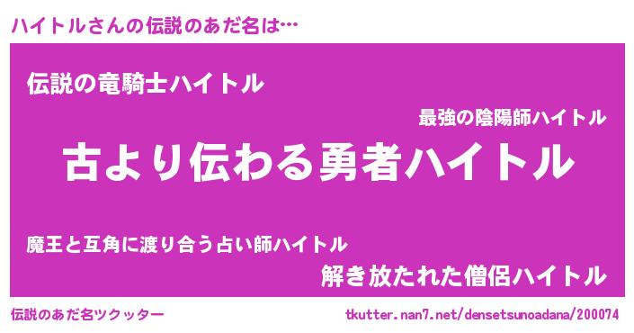 | 意味不明あだ名 | 『自称ハイトル』『永久保存ハイトル』 |
