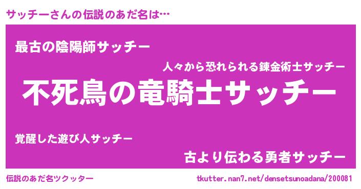 | ファンタジー風あだ名 | 『サッフェル』『エターナルサッチーー』 |