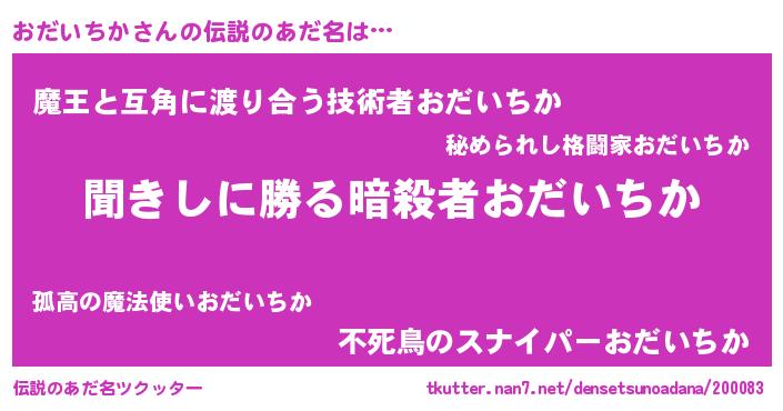 | 胡散臭い通販商品みたいなあだ名 | 『絶対に幸福をもたらす健康食品…その名も「おだいちか」』 |