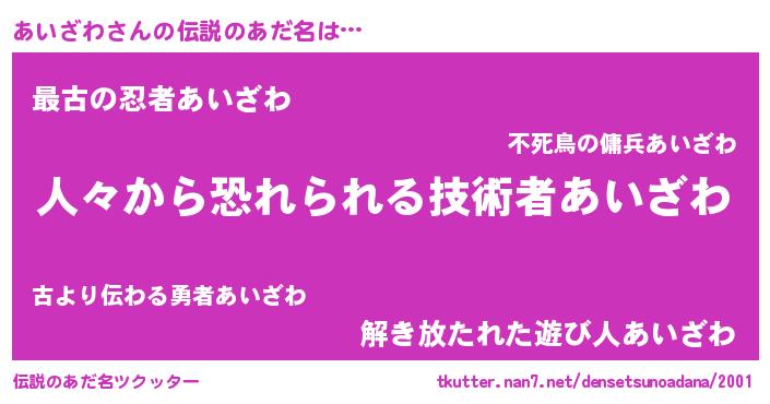 | ヒーロー風カッコイイあだ名 | 『正義の使者あいざわ』『幻影騎士アイ』 |