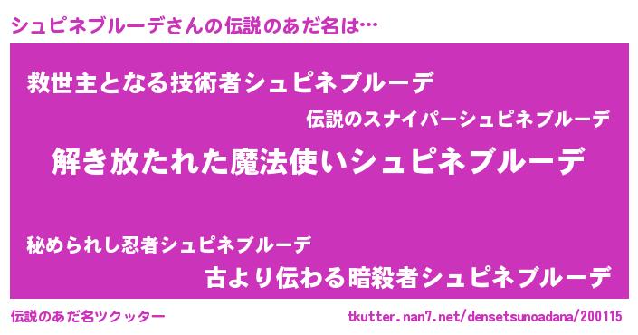 | ヒーロー風カッコイイあだ名 | 『幻影騎士シュ』『ネオシュピネブルーデ』 |
