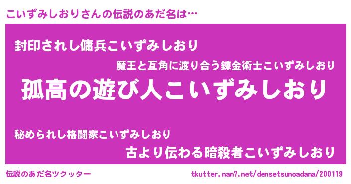 | 意味不明あだ名 | 『とにかく怪しいこいずみしおり』 |