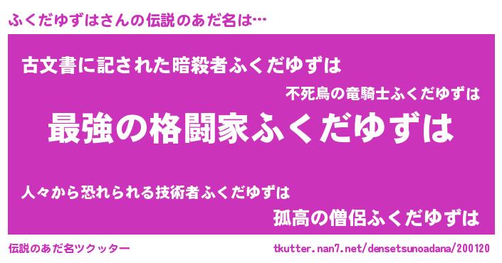 | 意味不明あだ名 | 『住所不定無職ふくだゆずは(8歳)』 |