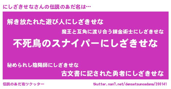 | 男性向けラノベタイトル風あだ名 | 『にしざきせなの憂鬱』 |