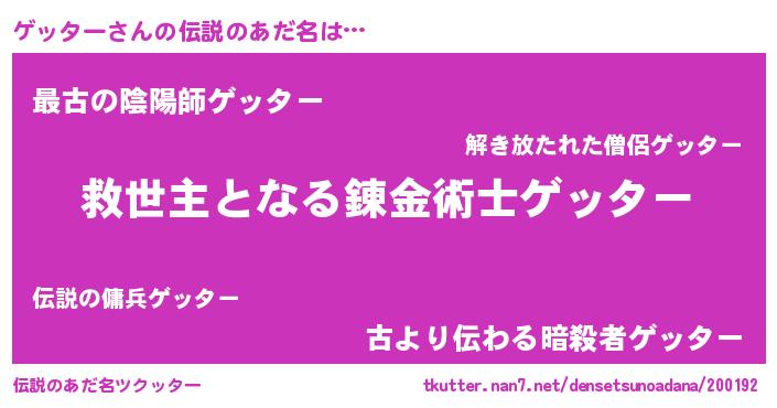 | ヒーロー風カッコイイあだ名 | 『慈愛の使者ゲッター』『ネオゲッター』 |