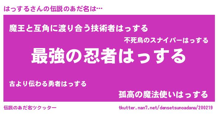 | 意味不明あだ名 | 『はっするフォーエバー』『自称はっする』 |