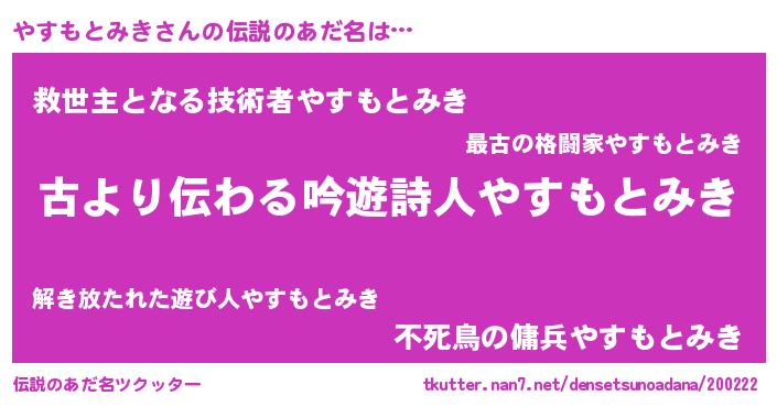 | ファンタジー風あだ名 | 『ヴァルヤスーナ』『ヤスディッシュ』 |