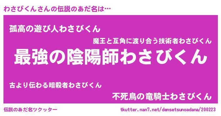 | 意味不明あだ名 | 『わさびくんフォーエバー』 |