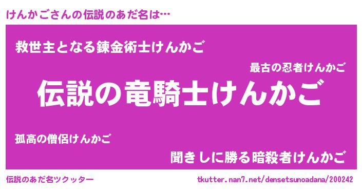 | 胡散臭い通販商品みたいなあだ名 | 『必ず成功するブレスレット…その名も「けんかご」』 |