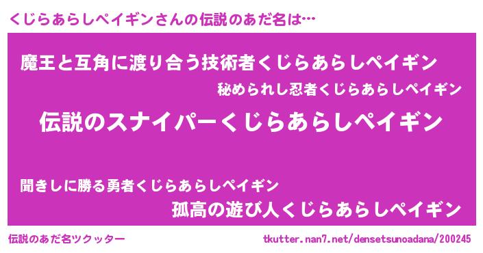 | ヒーロー風カッコイイあだ名 | 『スーパークジラアラシペイギン』 |