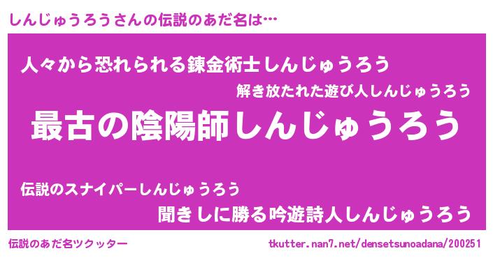 | ファンタジー風あだ名 | 『エターナルシンジュウロウー』 |