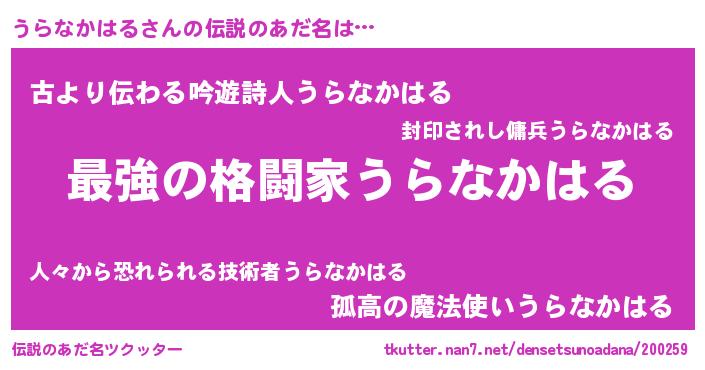 | 意味不明あだ名 | 『うらなかはるフォーエバー』 |