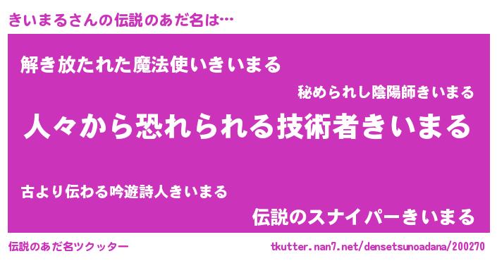 | ヒーロー風カッコイイあだ名 | 『正義の使者きいまる』『魔戒騎士キイ』 |