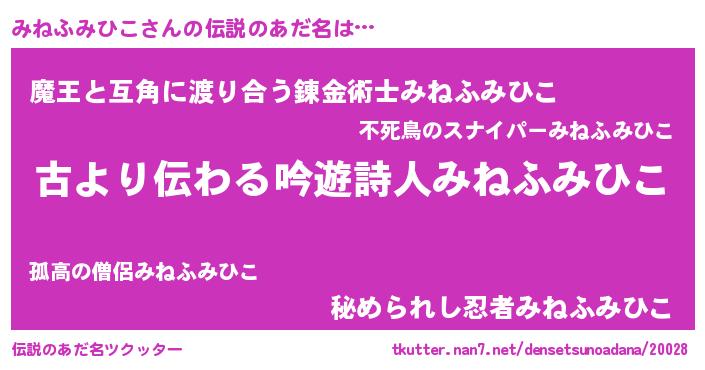 | 意味不明あだ名 | 『永久保存みねふみひこ』 |