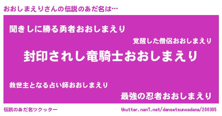 | 欧米人風あだ名 | 『マイケルおおしまえり』 |