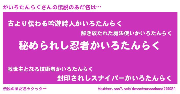 | 意味不明あだ名 | 『かいろたんらくフォーエバー』 |