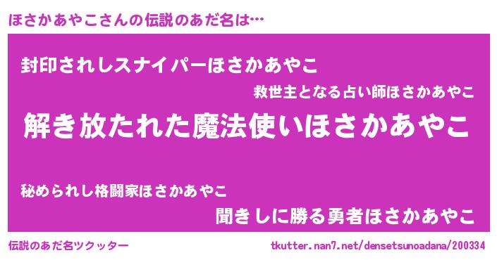 | ヒーロー風カッコイイあだ名 | 『幻影騎士ホサ』『スーパーホサカアヤコ』 |