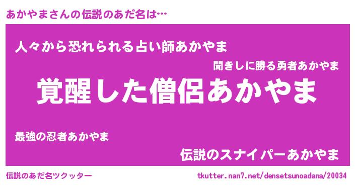 | 意味不明あだ名 | 『とにかく怪しいあかやま』 |