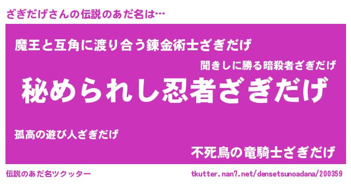 | 意味不明あだ名 | 『ざぎだげフォーエバー』 |