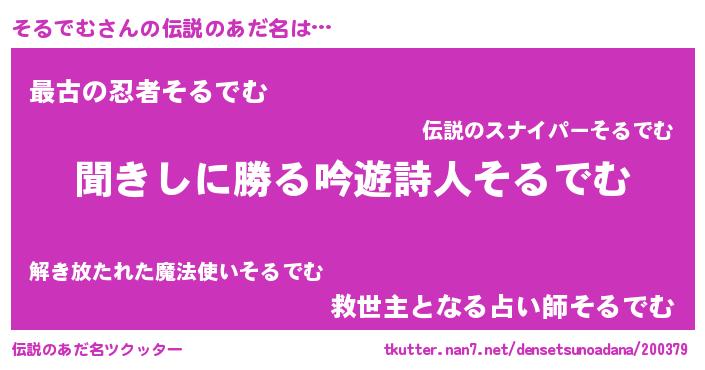 | ヘコむあだ名 | 『そるでむ(笑)』『なまこ酢』 |