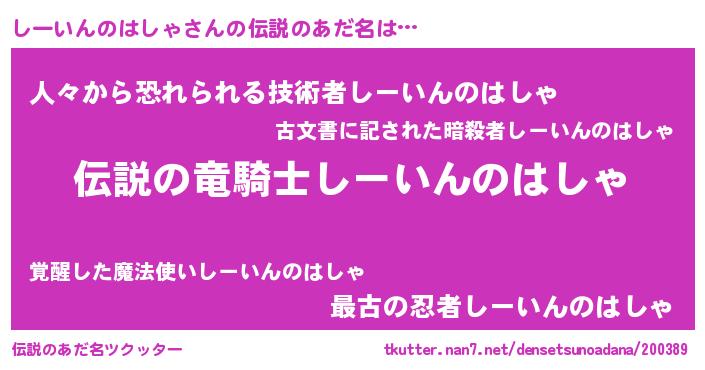 | 胡散臭い通販商品みたいなあだ名 | 『必ず成功するブレスレット…その名も「しーいんのはしゃ」』 |