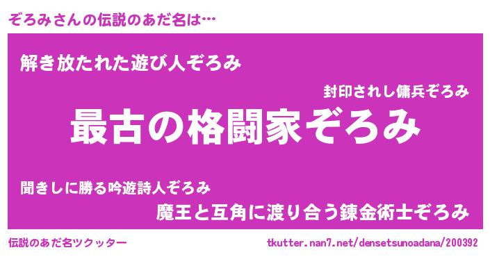| 意味不明あだ名 | 『ぞろみフォーエバー』 |