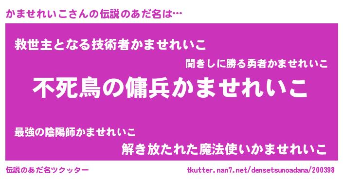 | 意味不明あだ名 | 『自称かませれいこ』 |
