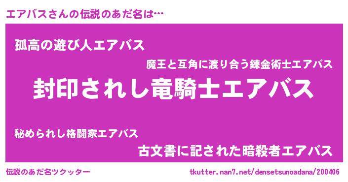 | 意味不明あだ名 | 『住所不定無職エアバス(13歳)』 |