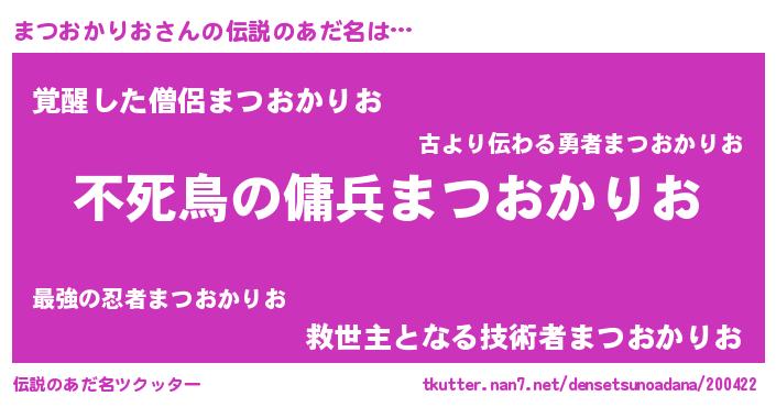 | 意味不明あだ名 | 『住所不定無職まつおかりお(43歳)』 |