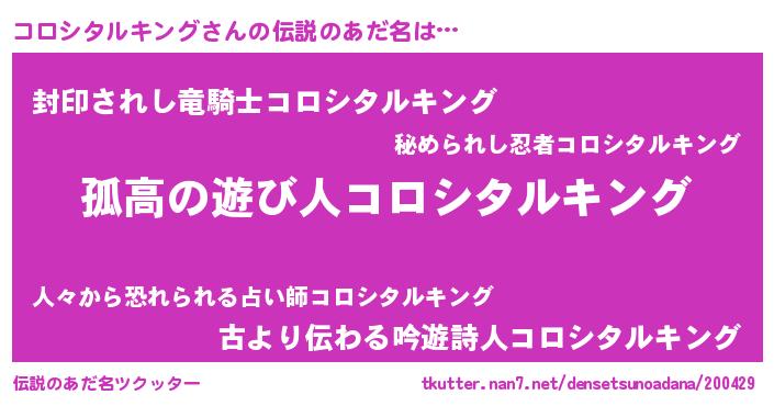 | 恥ずかしいあだ名 | 『コロシタルキングデラックス』 |
