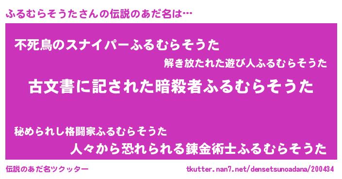 | 意味不明あだ名 | 『永久保存ふるむらそうた』 |