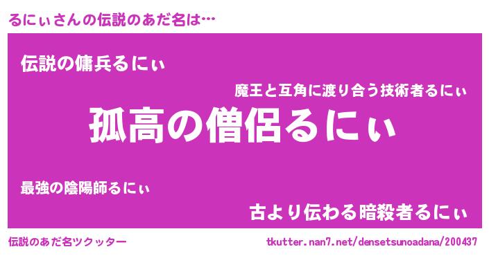 | 意味不明あだ名 | 『とにかく怪しいるにぃ』 |