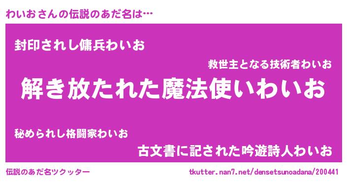 | 意味不明あだ名 | 『住所不定無職わいお(12歳)』 |