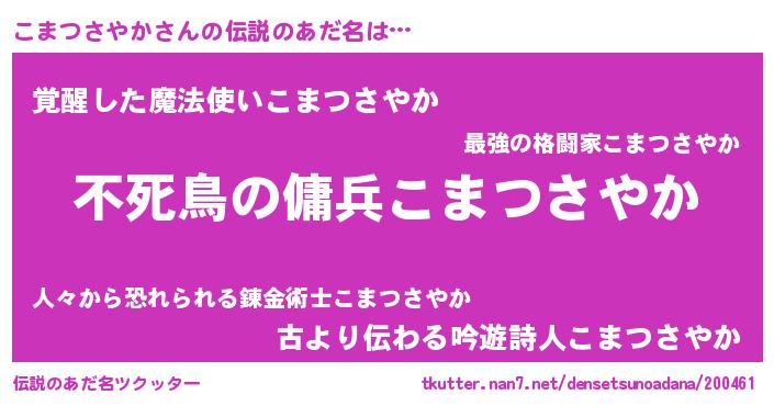| 女子向けラノベタイトル風あだ名 | 『こまつさやか姫と円卓の騎士』 |