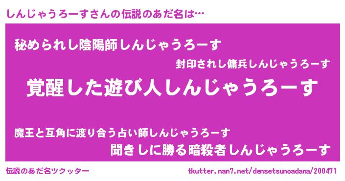 | 肩書あだ名 | 『しんじゃうろーす少将』 |