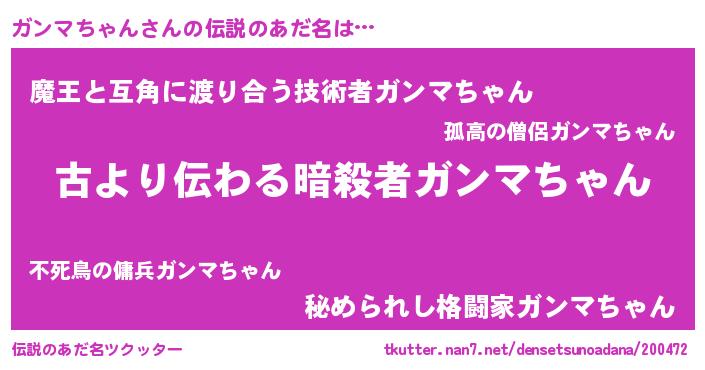 | 意味不明あだ名 | 『永久保存ガンマちゃん』 |