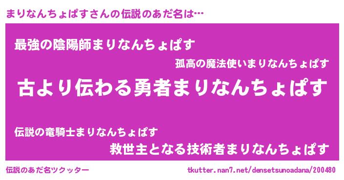 | ヒーロー風カッコイイあだ名 | 『ネオマリナンチョパス』『仮面マリダー』 |