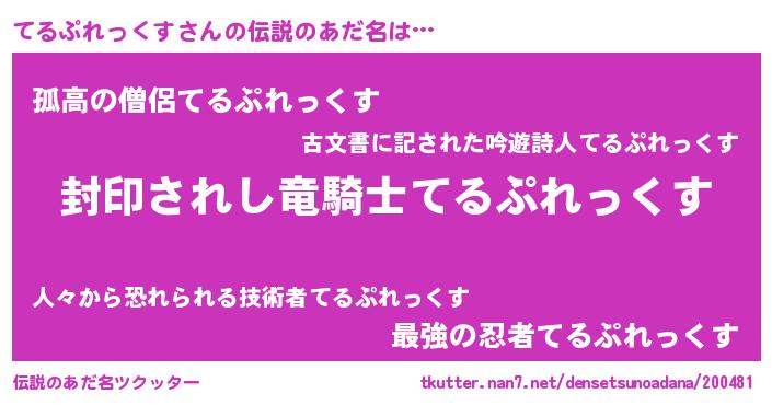| ファンタジー風あだ名 | 『テルフェル』『ファントムテルス』 |