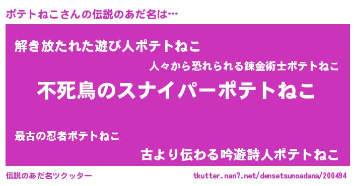 | ヒーロー風カッコイイあだ名 | 『サイバー戦士ポテトネコ』 |