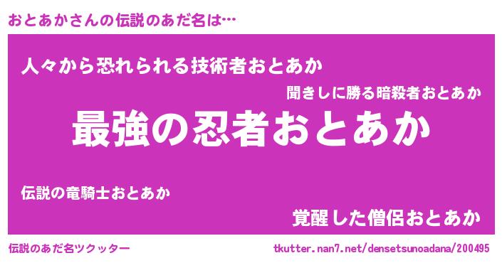 | 意味不明あだ名 | 『住所不定無職おとあか(62歳)』 |