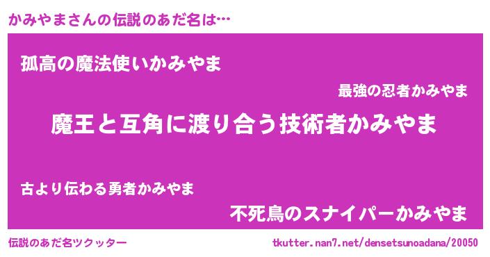 | ヒーロー風カッコイイあだ名 | 『愛の使者かみやま』『暗黒騎士カミ』 |