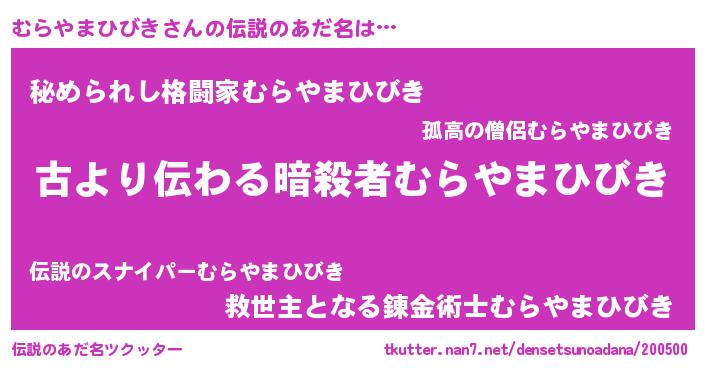 | 胡散臭い通販商品みたいなあだ名 | 『来世でも幸せになれる健康食品…その名も「むらやまひびき」』 |