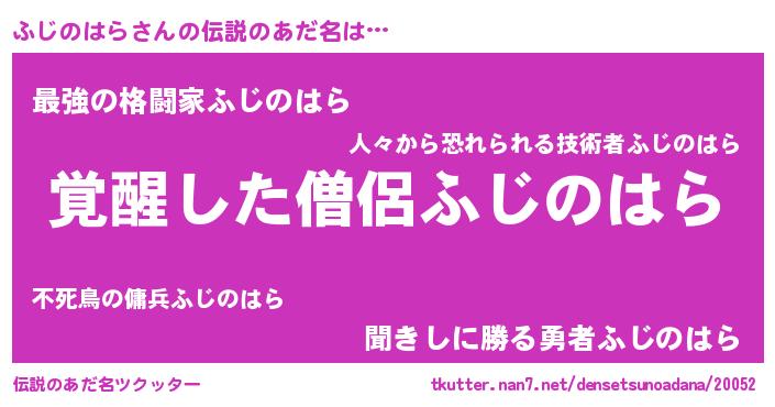 | ヒーロー風カッコイイあだ名 | 『幻影騎士フジ』『究極戦士フジノハラ』 |