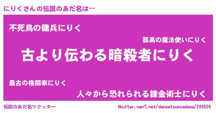 | 意味不明あだ名 | 『自称にりく』『永久保存にりく』 |