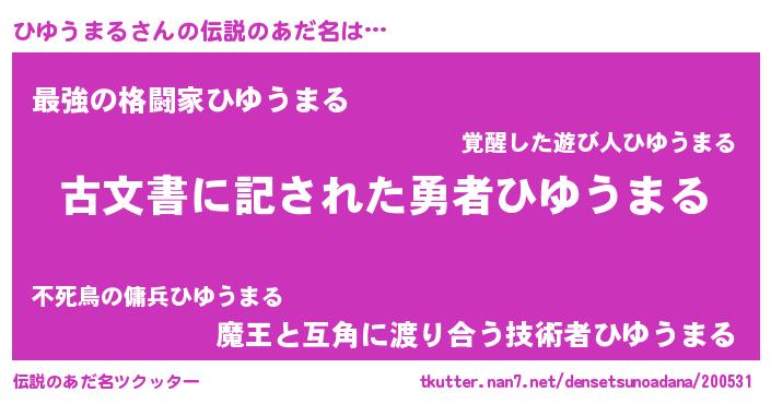 | 意味不明あだ名 | 『永久保存ひゆうまる』『自称ひゆうまる』 |