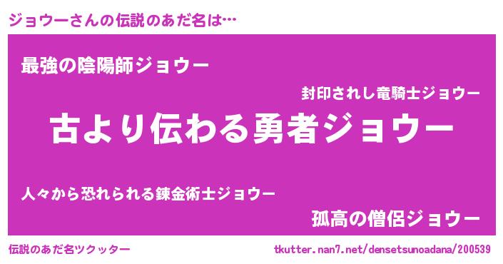 | ヘコむあだ名 | 『ジョウー(震え声)』『酢こんぶ』 |