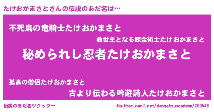 | ファンタジー風あだ名 | 『エターナルタケオカマサトー』 |