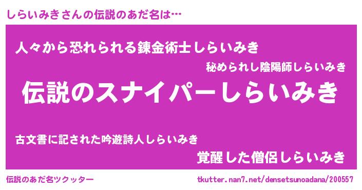 | ヒーロー風カッコイイあだ名 | 『スーパーシライミキ』『炎刃騎士シラ』 |