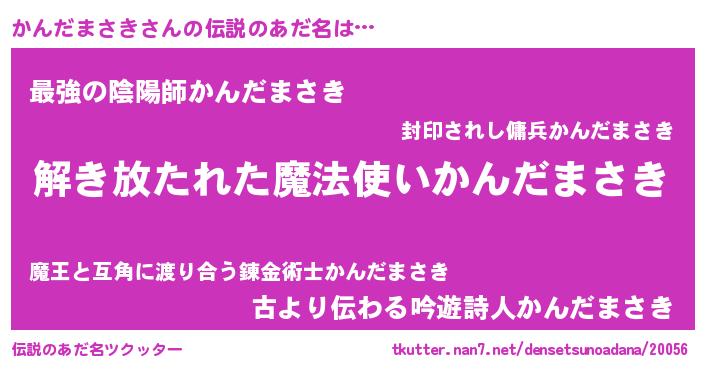 | 胡散臭い通販商品みたいなあだ名 | 『伝統あるサプリメント…その名も「かんだまさき」』 |