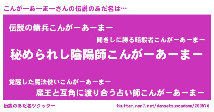 | 女子向けラノベタイトル風あだ名 | 『こんがーあーまーの雑貨屋さん』 |